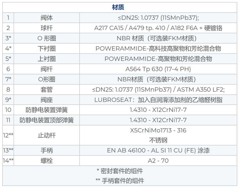 • 截止流体:油类、石油和石化产品、水和其他可与制造材料相容的流体