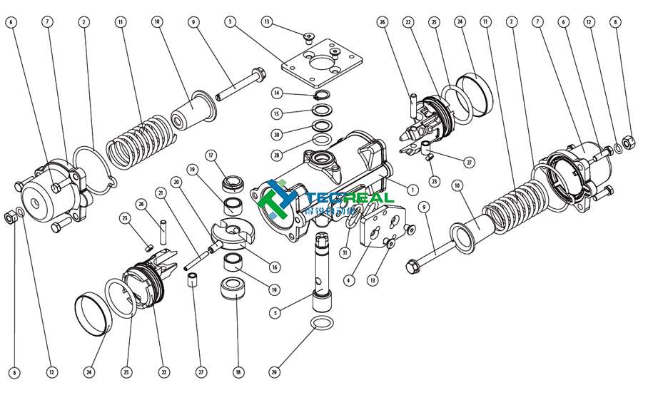 OMAL的不锈钢气动执行器和碳钢执行器其内部结构与铝合金气动执行器内部结构是一样的。