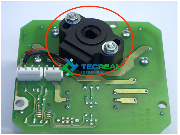 第四步: 使配件盒的孔对准执行器的孔,然后拧上螺丝。